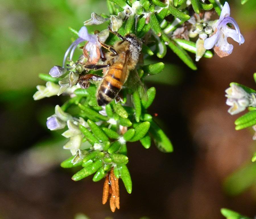 В заключение Bees study - серия снимков пчёл, собирающих мёд и пыльцу с цветущего куста розмарина у меня во дворе. После трёх дней дождя вышло солнышко, и пчёлки деловито взялись отрабатывать время вынужденного простоя. Снято объективом-телевиком...