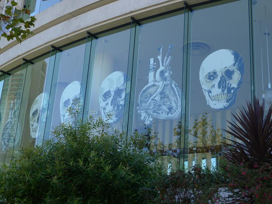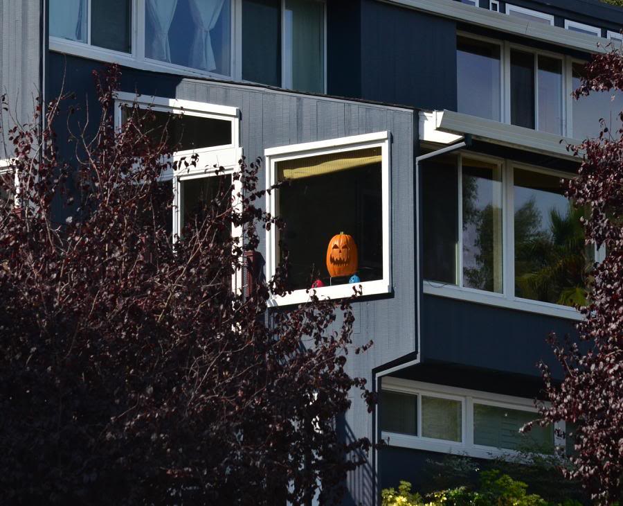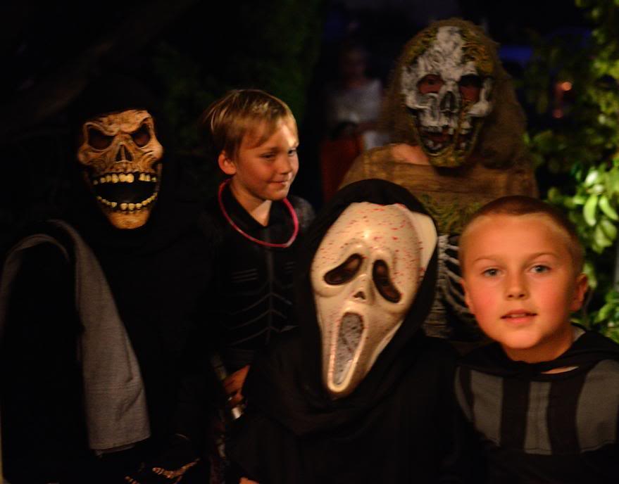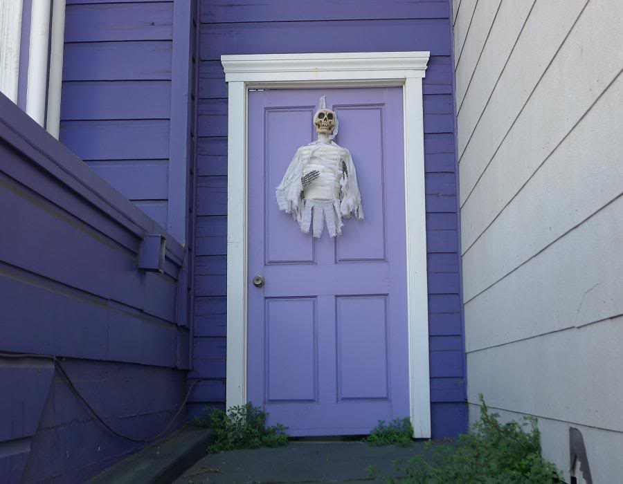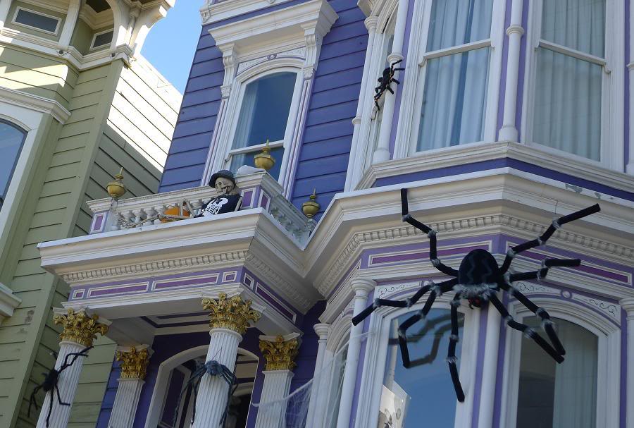 Повсюду на фасадах - пауки, черепа, скелеты, привидения...