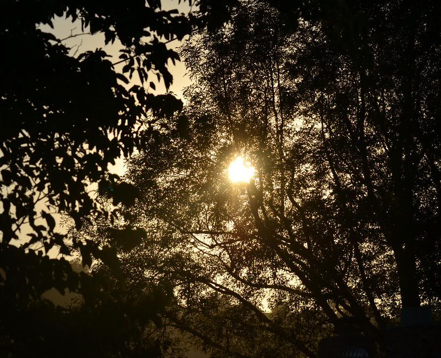 Солнце зловеще пряталось за деревьями, предвещая наступающий вечер Халлоуина