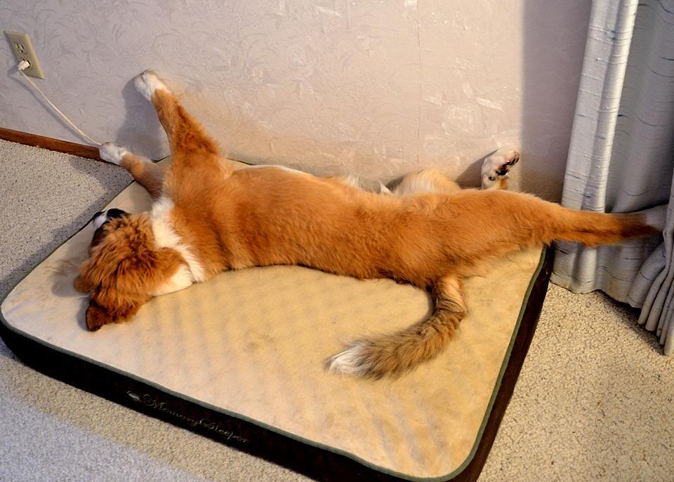 Сукин сын за своей ново-изобретенной игрой – вытаскиванием электрического шнура из розетки. Он уже так вырос, что с трудом помещается на своём тюфячке...