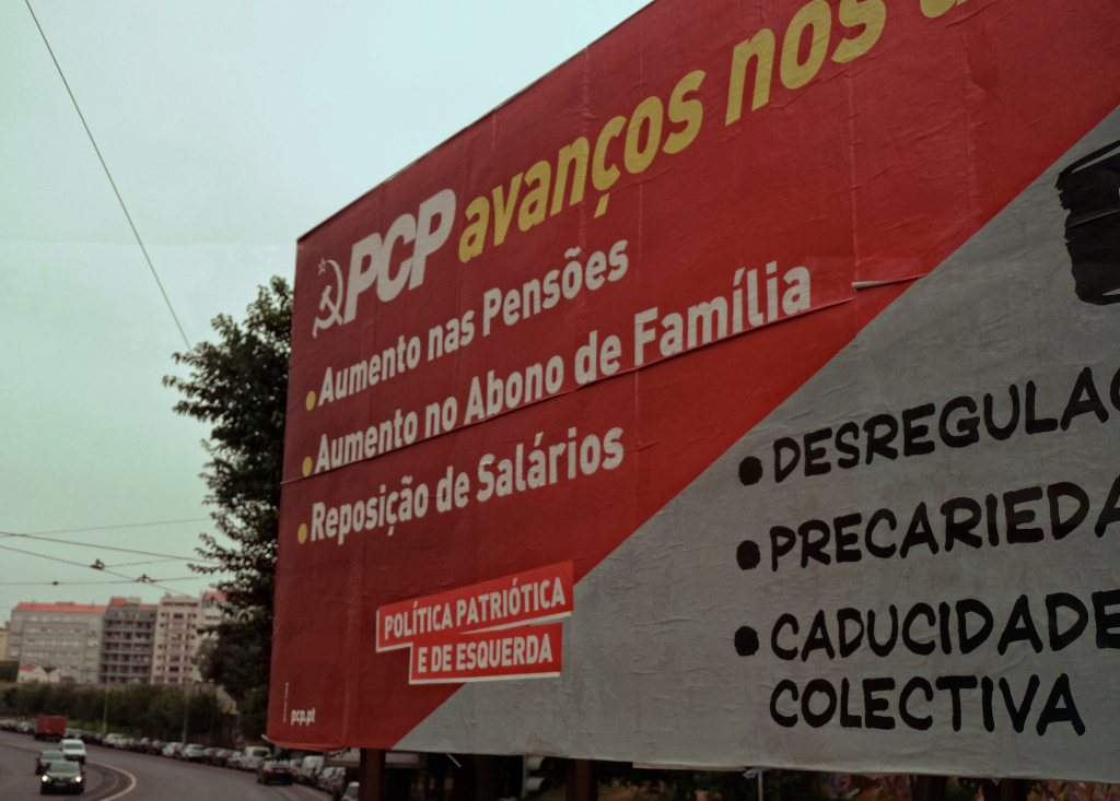 7. Город встретил нас сочащейся с неба влагой и пунктами политической программы Компартии Португалии: