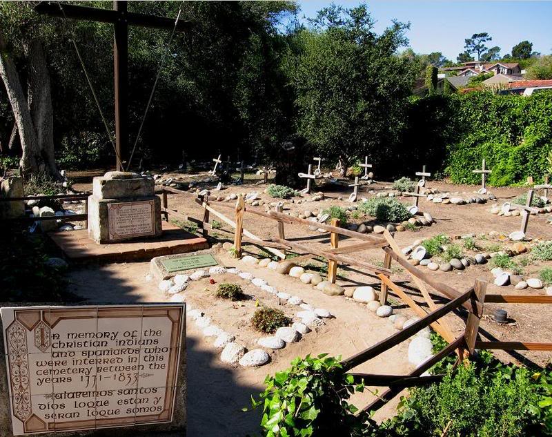 Самой высокой наградой для новообращённых (эквивалентной захоронению в кремлёвской стене) была возможность быть похороненным в стенах миссии. Так выглядят сегодня могилки сподобившихся – с деревянными крестами, обложенные камушками и раковинами моллюска abalone, служащего местным лакомством с древнейших времён и поныне