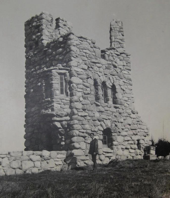 Непостижимо, как удалось Робину затащить наверх гигантские булыги, использованные в кладке. Фотографии сохранили леса, которые он построил для подачи наверх материалов, с блоками и прочими ухищрениями. Всё равно, я представляю, как четыре года подряд он подымался с утра и отправлялся таскать свои камни, потому что так сказала жена, и замираю в смятенье, ибо если кто сомневается в существовании любви, – вот это она и есть.