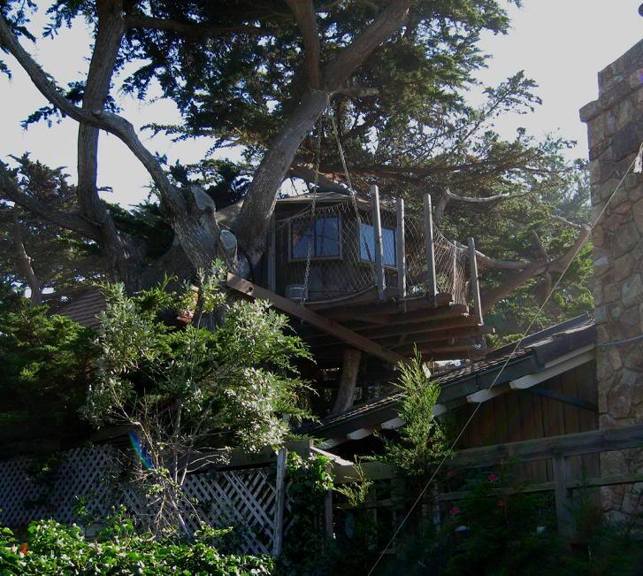 Некоторые построены даже не без изобретательно сти. Вот хороший пример смекалки: для восполнения малости территории хозяин придумал построить дом на дереве (пентхаус? капитанская рубка? гостевая спальня? детская?...)