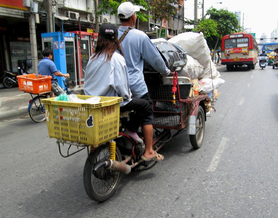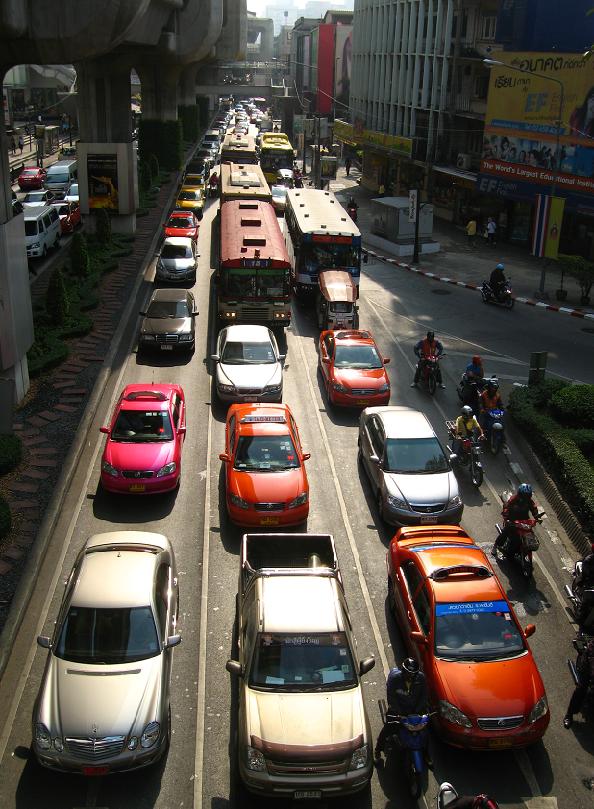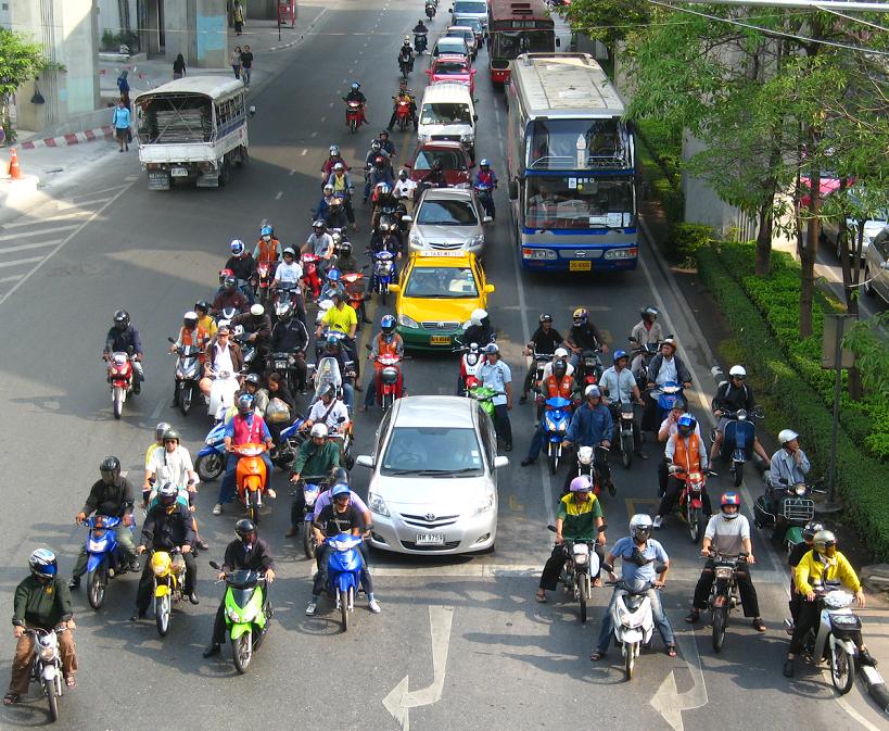 Если бы все таиландцы, которым нужно куда-то добраться, пересели в автомобили, жизнь в стране просто-напросто прекратилась бы. Положение спасают люди на мотоциклах и мопедах. Они просачиваются сквозь автомобильный траффик, накапливаясь перед красным светом на перекрёстках; на зелёный свет они с невероятным грохотом рвутся с места, оставляя автомобилистам шлейфы удушливой гари и возможность провести следующие полчаса на том же самом перекрёстке.