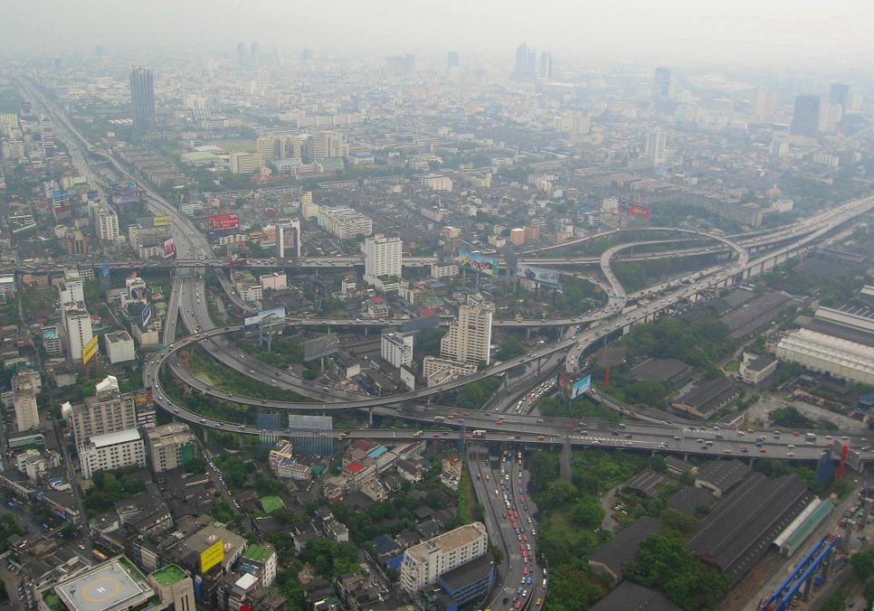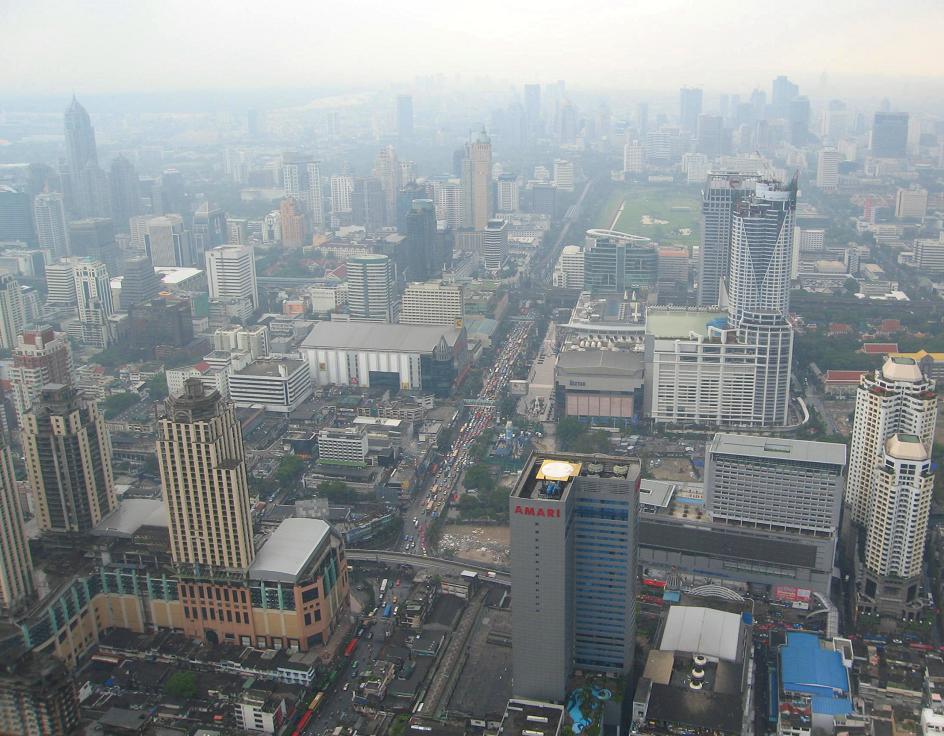 Вот сегменты панорамы города, как она видится с вращающейся обзорной площадки на 84-ом этаже гостиницы Baiyoke Suitе Hotel: