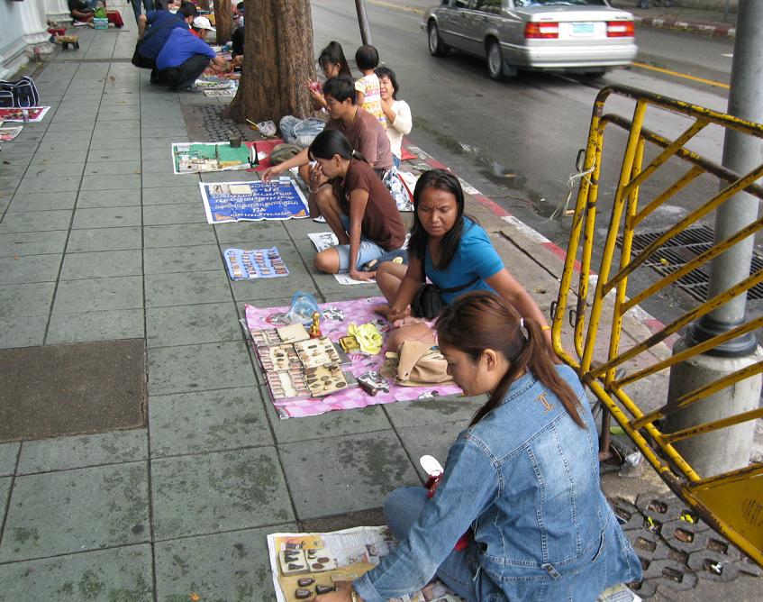 Торгуют не только едой. Вот торговля туристскими сувенирами с тротуара в одном квартале от королевского дворца: