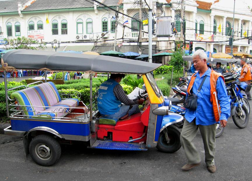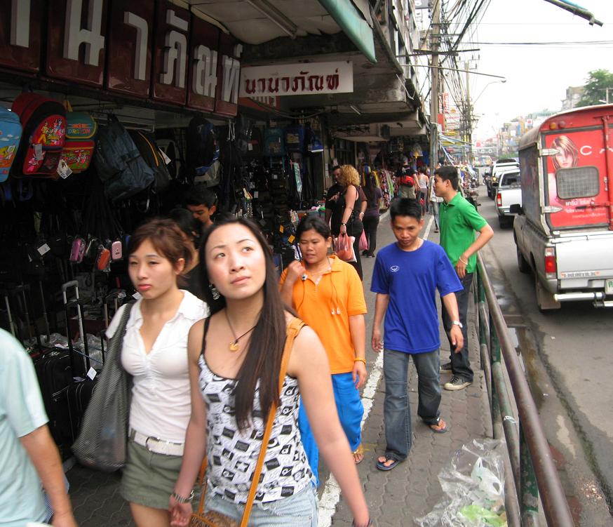 Тротуары здесь предназначены не для хождения, а для мелкой торговли, для движения мопедов, кроме всего прочего на тротуарах попадаются глубокие ямы, так что рекомендуется смотреть под ноги, леди и джентльмены. Кроме того, когда вы идёте пешком (необычный способ передвижения для иностранцев, хотя и вполне привычный для меня), к вам время от времени с разных сторон устремляются благожелатели в надежде заработать пару-другую батов: "Hey you, where you go? You wan tuk-tuk? Boom-boom, misater?"
