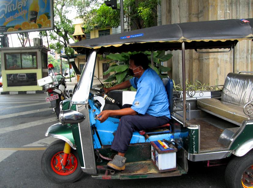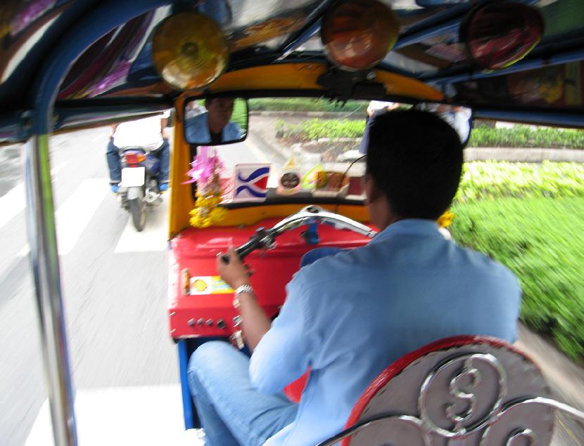 Как вы думаете, много ли города вам удастся увидеть из-под навеса тук-тука? Фото, которое я сделал во время поездки по Бангкоку, даёт представление о том, что в общем пассажиру тук-тука не много чего видно. Оно также даёт представление о тряске, которой подвергаются пассажиры. Зато дёшево и сердито!