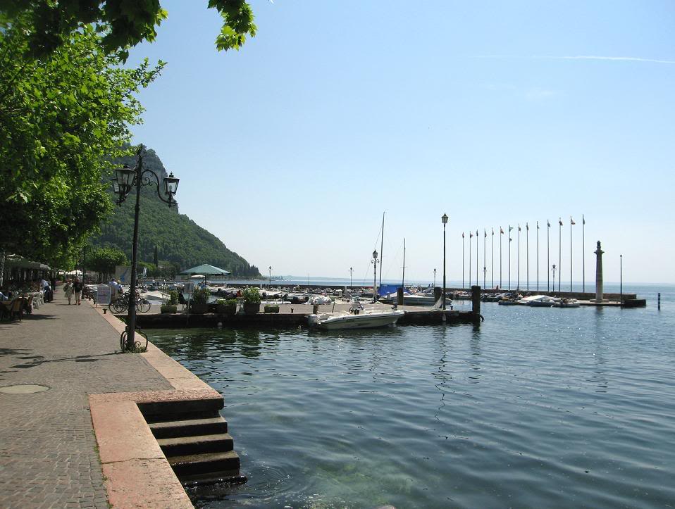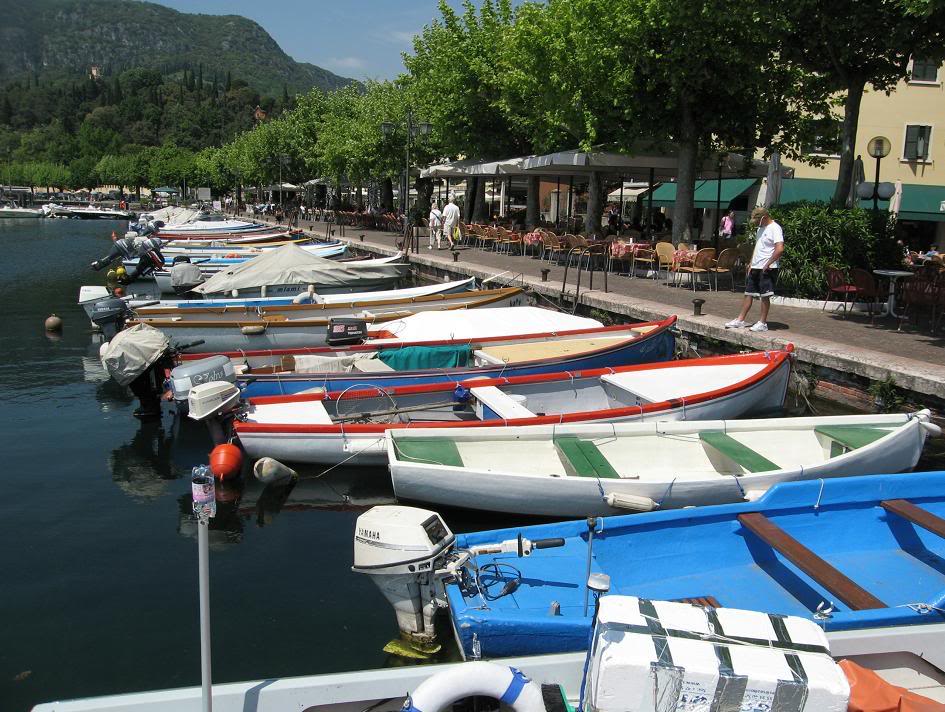 Городок Гарда на восточном берегу озера: лодки у набережной