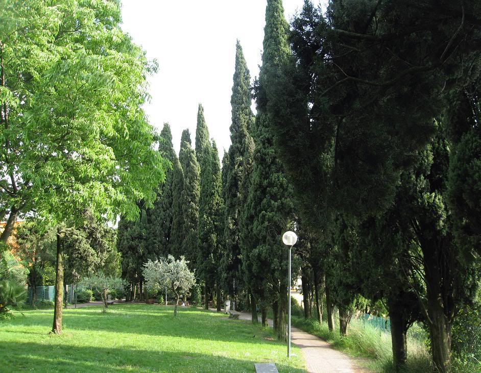 Выше над городом находится тихий зелёный парк, с великолепными кипарисами, какие почему-то растут только в Италии