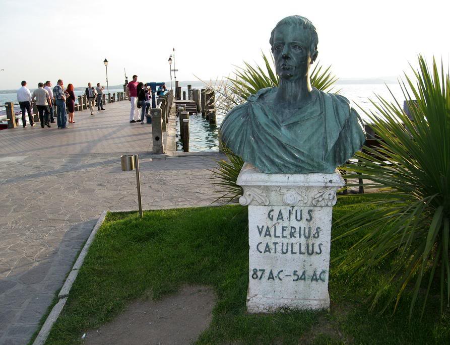 Гай Валерий Катулл – часть пакета туристских приманок Сирмионе. Еще у причала путешественник а встречает бронзовый бюст поэта, родившегося в Вероне. В одном из своих стихотворений Катулл описывает возвращение на семейную виллу в Сирмионе. Кроме этой виллы он владел ещё иместьем в Тибуре (Tivoli), но всё равно жаловался на бедность; я так понимаю, поэт – вообще не поэт, если он доволен жизнью и ни на что не жалуется...