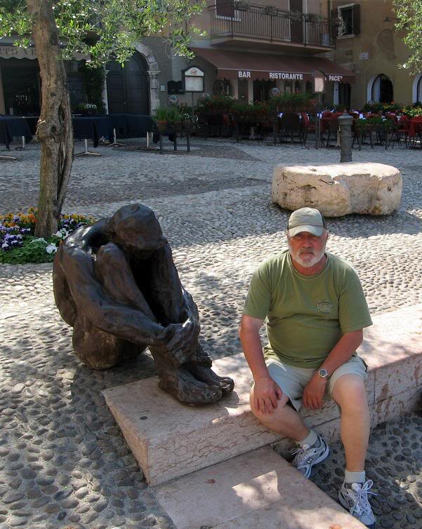 ...сел и сам рядом с человеком, погружённым в глубокое раздумье (memento mori?), чтоб решить: пойти в ближайший бар выпить пива или сосредоточитьс я на том, что надо вести машину обратно в Пескиеру...