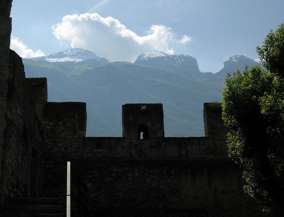 Над замковой стеной – гряда высоких покрытых снегом вершин. Это Adige.