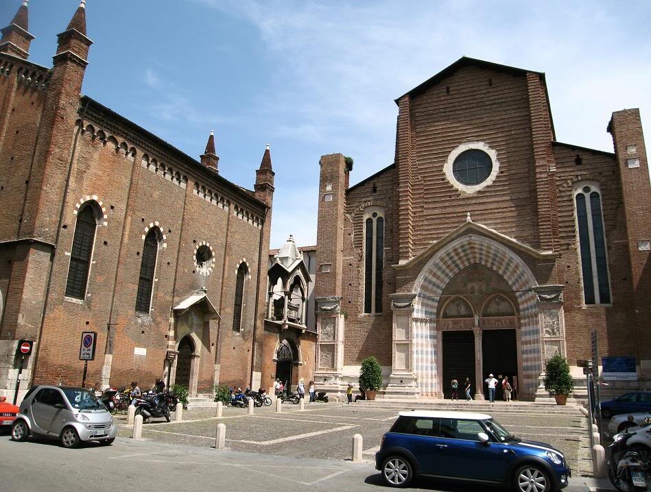 У самой реки стоит Базилика Святой Анастасии – массивное кирпичное здание.