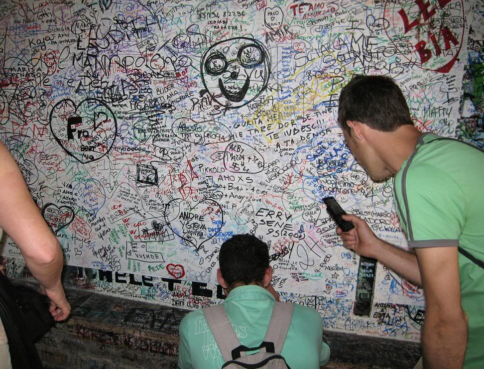 Все наружные и внутренние стены подворотни расписаны автографами влюблённых и просьбами (к Джульете?) о ниспослании вечной любви. Массовая истерия высокого накала!