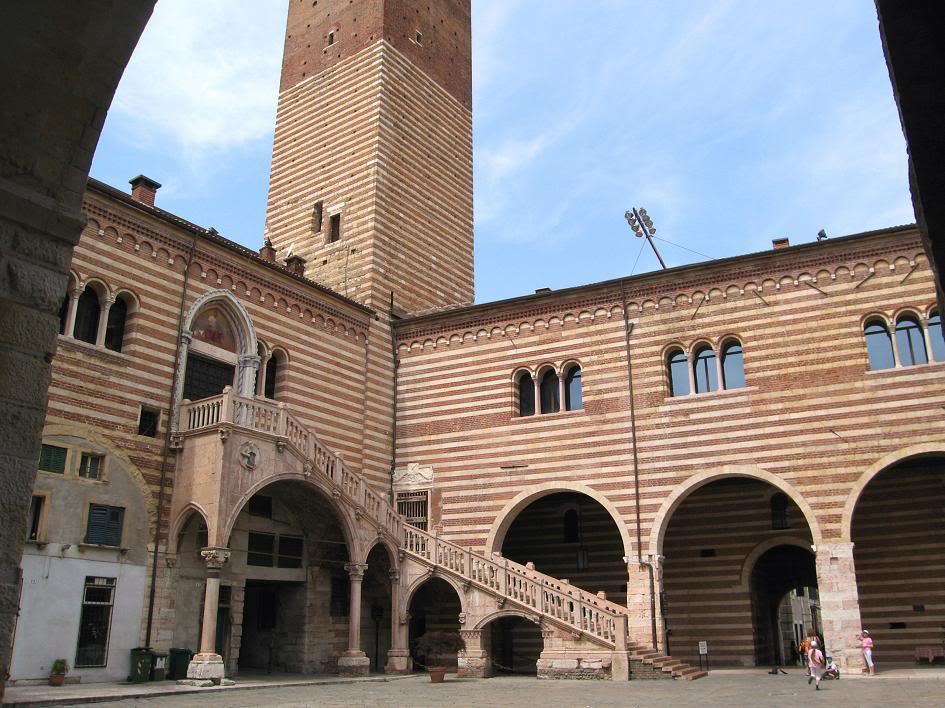 Palazzo Communale, в строгом кирпичном дворе которого я нашёл готическую лестницу, напомнившую мне театральную декорацию к какой-то давным-давно виденной постановке Ромео и Джульеты – перед этой лестницей и с ей участием происходили события во дворе замка Монтекки