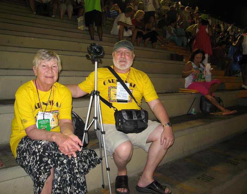 Билеты отнюдь не дёшевы – по $1000 на человека, и я рассчитывал, что за эти деньги можно будет с удобством наблюдать карнавальное шествие и заниматься съёмкой. До того, как трибуны заполнились зрителями, Кальмейер аккуратно расставил треногу, укрепил видеокамеру, педантично выставил все настройки, проверил поле зрения и, удовлетворённы