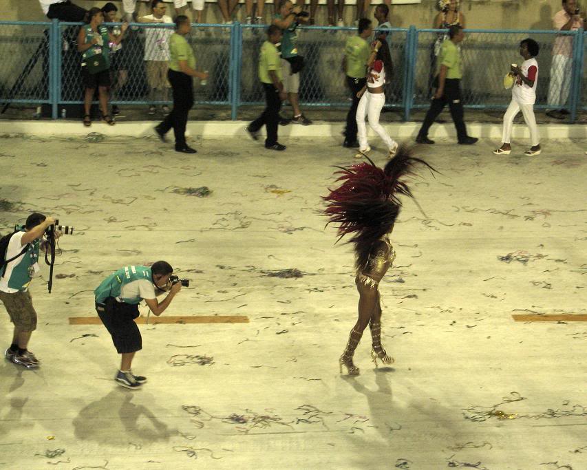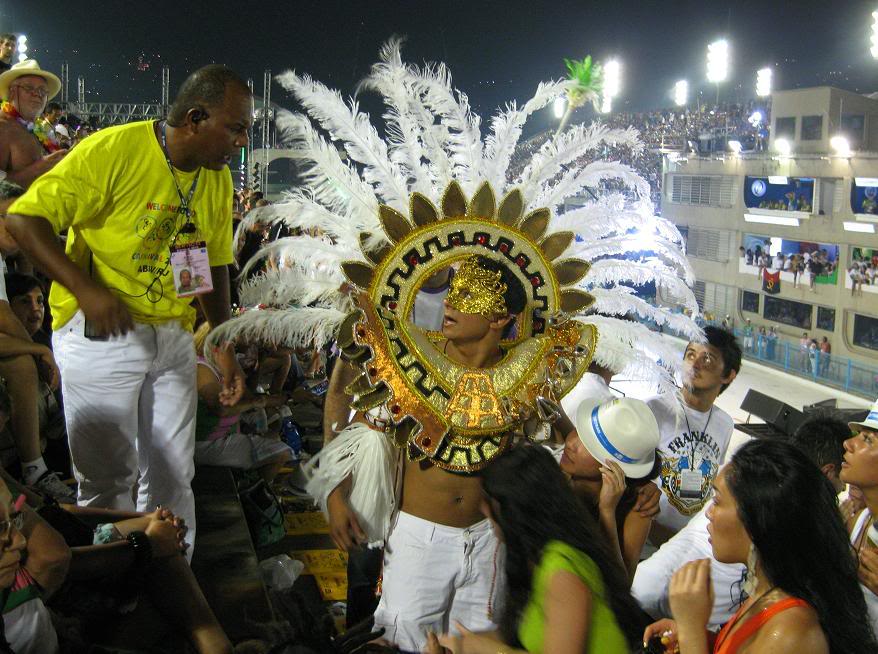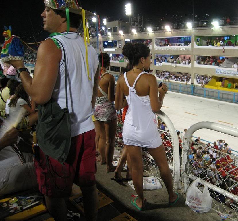 Билеты наши были во втором ряду сектора 9. Турбюро подарило нам с Тоней дурацкие яркожёлтые карнавальные ти-шортки (чтобы их шоферу было проще выделить нас из толпы), и эти двое гринго, конечно же, в них обрядились. Выглядели мы, конечно, глупейшим образом... хотя и не более глупо, чем множество наших соседей по трибунам Самбодрома – в девятом секторе много американцев: