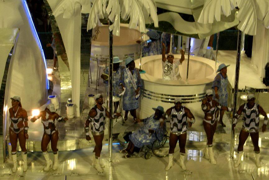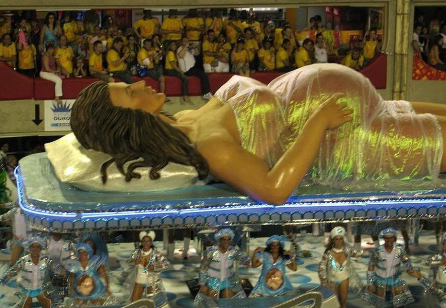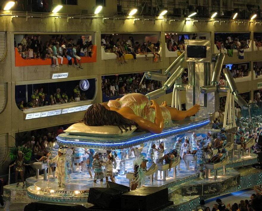Шествие шло бесконечно. Ещё пара «король-королева», опять дивы с восхитительно торчащими попками, с воткнутыми туда перьями, всё новые и новые платформы со всё более диковинными существами, отплясывающими самбу. На протяжение многих часов бесконечно гремит одна и та же музычка