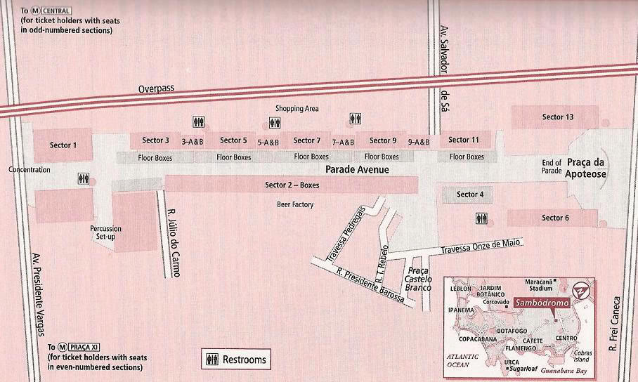 Ниже я привожу схему Самбодрома, чтобы читатель мог понять, с какой точки я делал свои фотографии и откуда снято видео.