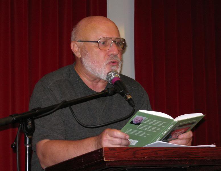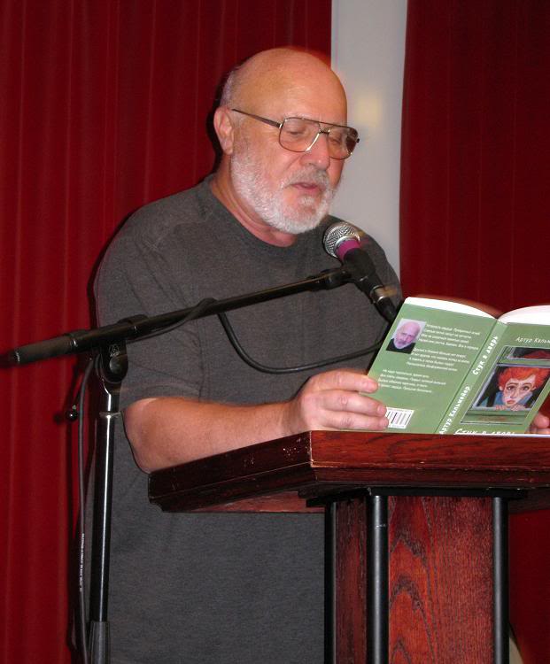 Она и сделала снимки, которые вы сможете увидеть под катом. Спасибо ей за откровение: я никогда не представлял себе, что в процессе чтения строю такие жуткие рожи. Сегодня посмотрел на свои ужимки и прыжки и решил завязать с публичными чтениями: негуманно подвергать публику (особливо пожилых людей) такому шоку!
