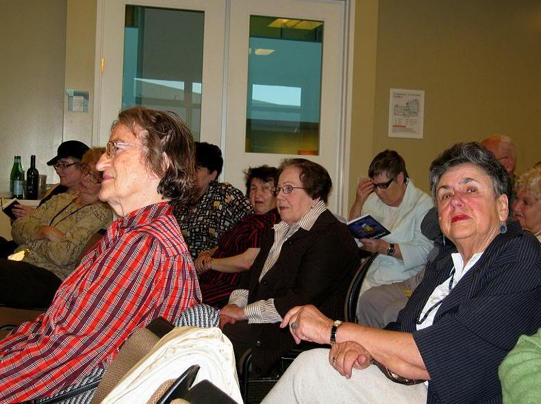 На вечер явилось человек 40 (хе-хе, симпатичный зал вместил всех жителей Сан-Франциско, привлечённых так называемым творчеством Кальмейера. ;) Особенности публики, интересующейся русскими текстами, наверное одинаковы повсюду в мире: это по большей части пожилые и очень пожилые (вплоть до совершенно геронтологичес ких экземпляров) ценители быстро умирающей культуры. Учитывая, что и сам автор относится к той же возрастной страте населения, можете представить себе, какое веселье ожидало бы собравшихся, если бы моя супруга по своему обыкновению всех непременно кормить, не решила притащить с собой ящик вина и лёгкий закусон. Как ни пытался я возражать, объясняя, что народ после закусона просто-напросто уснёт во время чтения стихов, унять страсть женщины к междусобойчика м мне не удалось, поэтому поначалу всё было очень весело, но к концу моих чтений двое слушателей, закрыв глаза, блаженно сваливались на бок - один на плечо стеснительно расталкивавшей его супруги, а вторая пожилая дама просто зависала в пространстве, и я не мог сконцентрирова ться на чтении - всё время поглядывал на неё, опасаясь, что она с грохотом упадёт на пол. К счастью, обошлось.