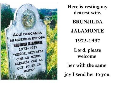 "Здесь покоится моя дорогая жена, Брунхильда Халамонте.