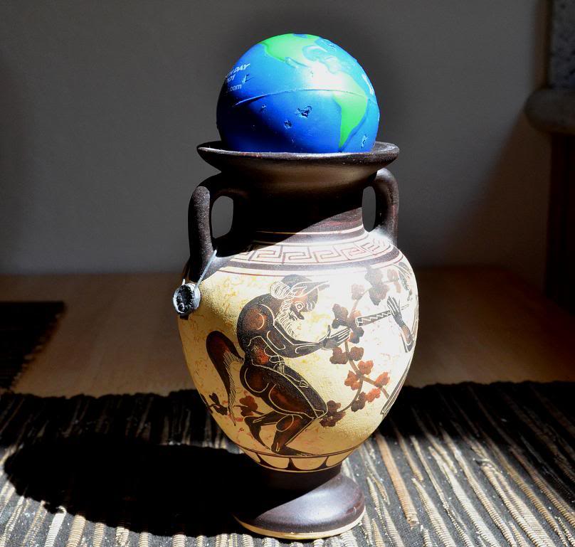 Греческая ваза с резиновым глобусом, погрызенным нашим псом