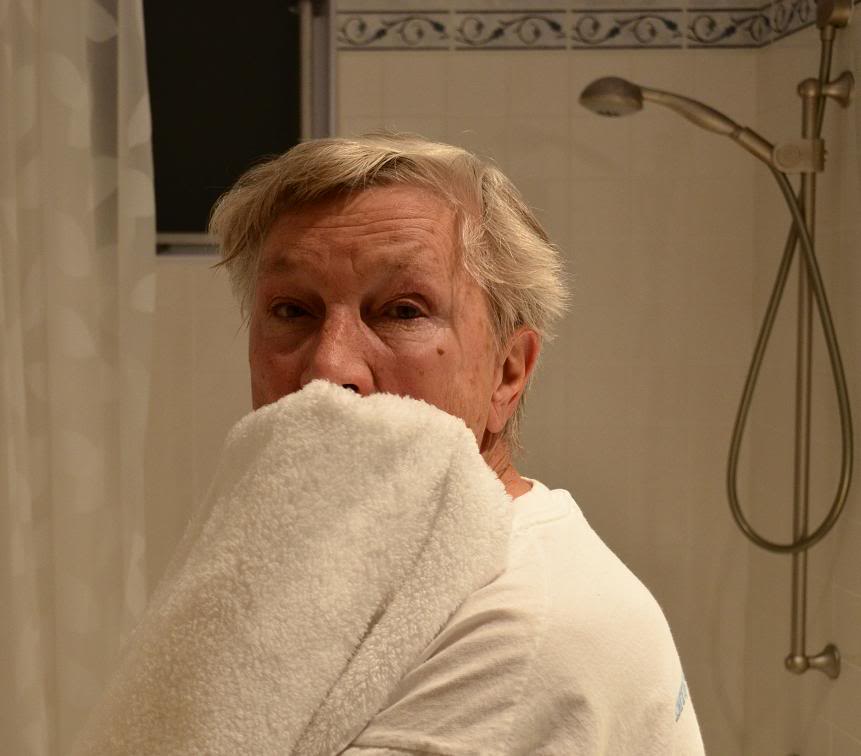 Внезапный налёт в ванную застал женщину врасплох, в ненакрашенном состоянии.