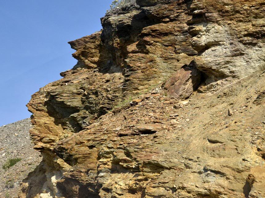 Откосы ущелья сложены ярко окрашенными известняками, которые у нас в Калифорнии называют «мыльным камнем».