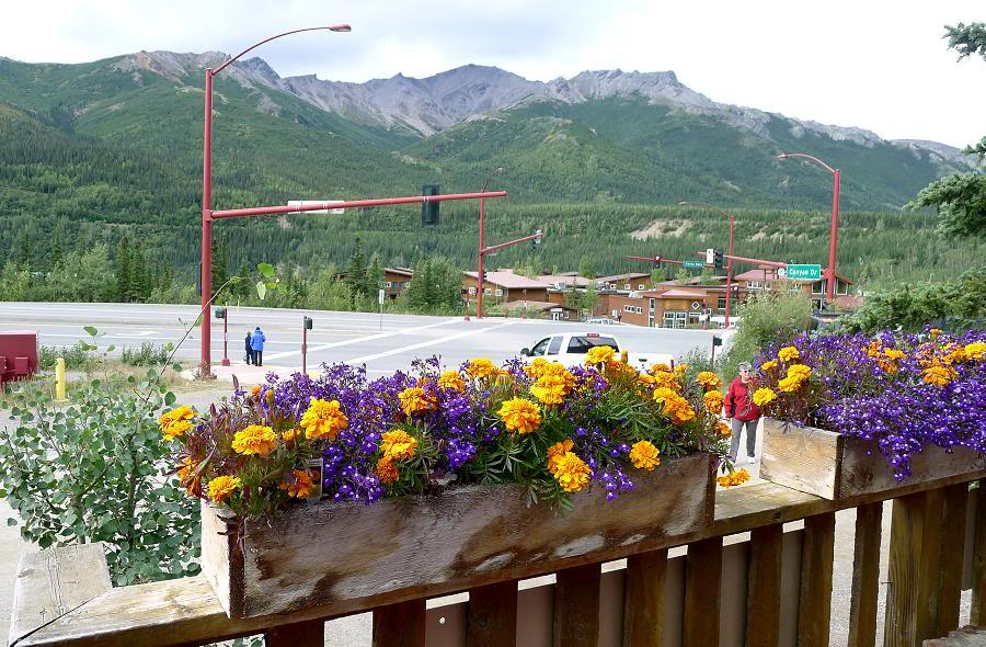 Порции были огромными. Мы так наелись, что еле выползли на свет божий. На веранде в горшках стояли невиданных размеров цветы. Так выглядят георгины в Денали: