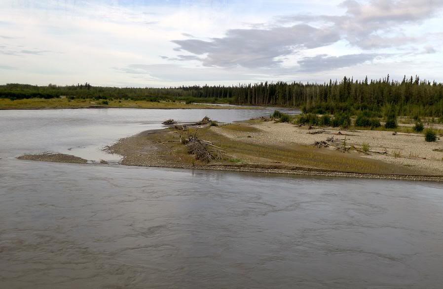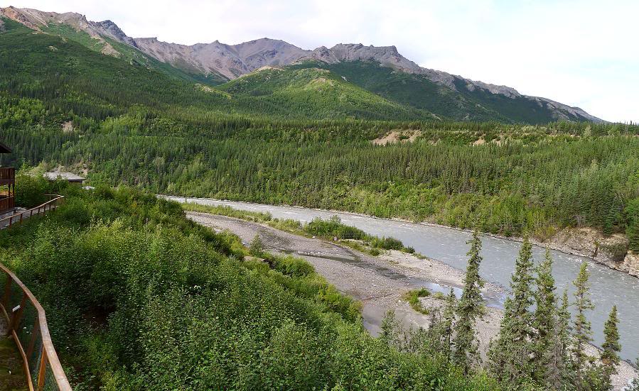 Дорога от Фэйрбэнкса идёт вдоль берега речки Ненана. Ненана питает реку Танана, а та впадает в Юкон, истоки которого лежат в канадской