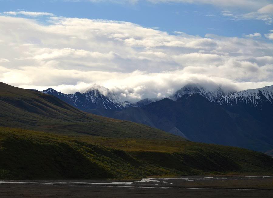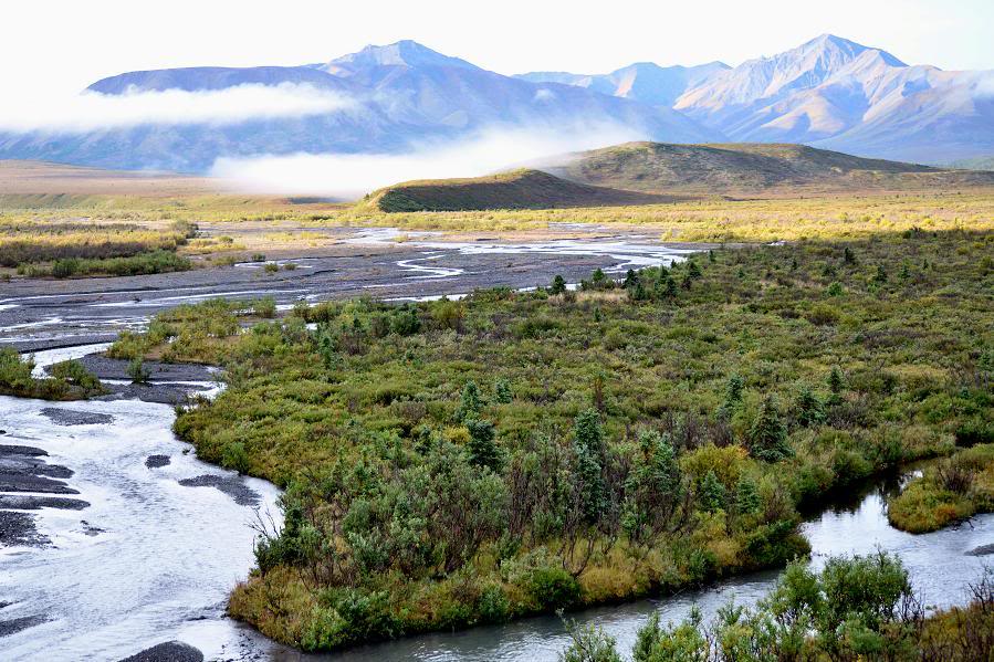 Утро выдалось безоблачным, и мы надеялись, что нам повезёт на один из тех редких дней, когда Mount McKinley позволяет путникам полюбоваться своей красотой. С самого начала пути нас с Тоней не оставляло странное ощущение, будто мы попали наяву в фантастическую Землю Санникова... Судите сами...