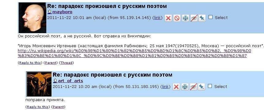 Помещаю восхитительный обмен мнениями, возникший из-за того, что