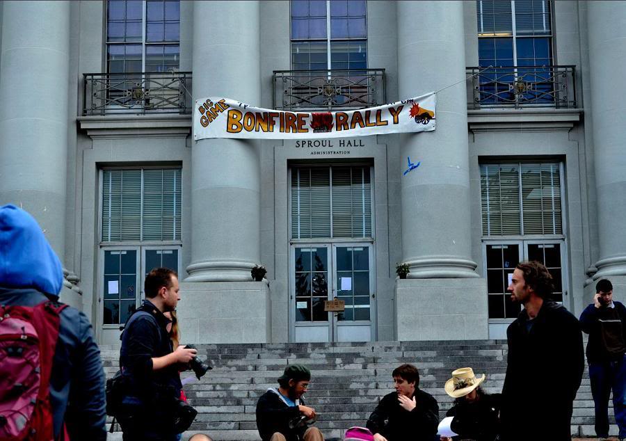 Над входом в Sprout Hall висел плакат, не имеющий никакого отношения к оккупации кампуса. Совсем наоборот, он приглашал студентов собраться на "шествие с костром" в преддверии Большой Футбольной Игры (под Большой Игрой здесь понимают футбольный матч с традиционными врагами - командой Стэнфордского университета)