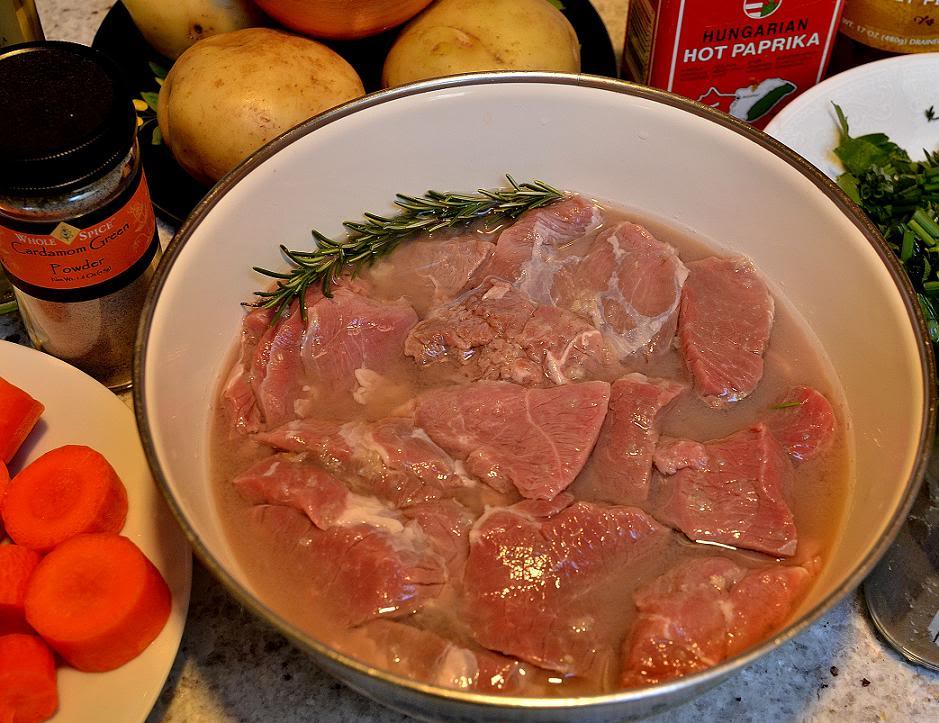 - 2.5 фунта бараньего мяса, очищенного от жира и жил, нарезанного на кусочки для жаркого.