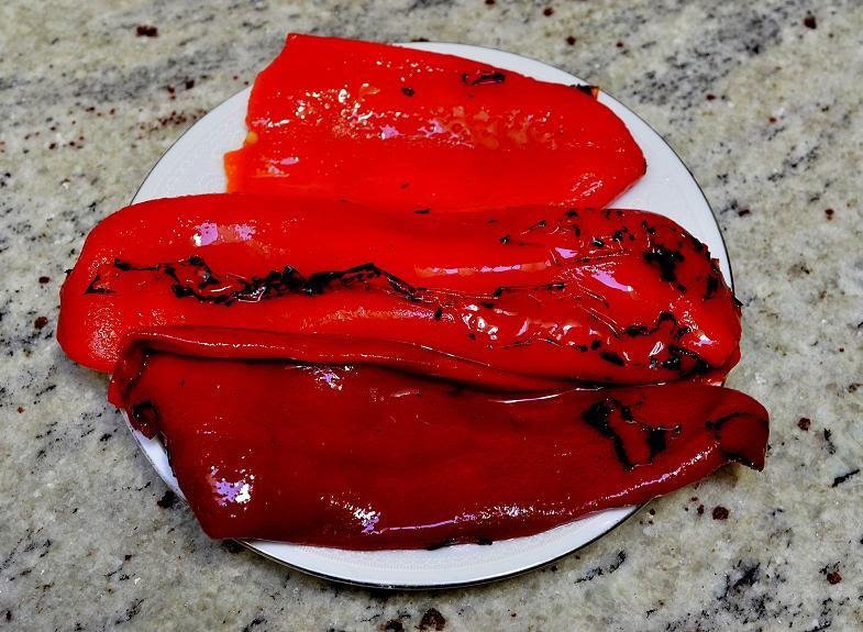 ых (предварительно обжареных маринованных) красных перца, нарезанных на полоски в полдюйма шириной.