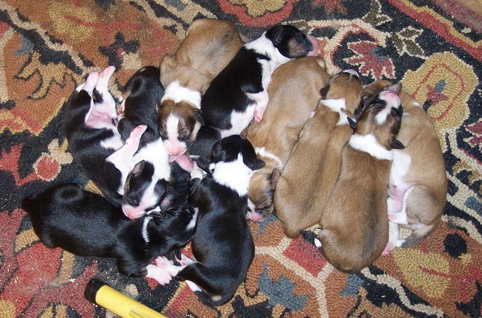 Групповое фото всех новорожденных - чистопородных English Shepherds.