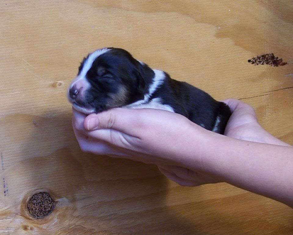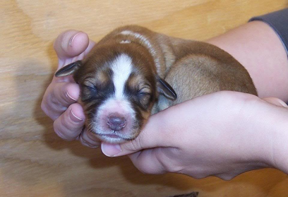 Так выглядит один из трёхцветных щенов: