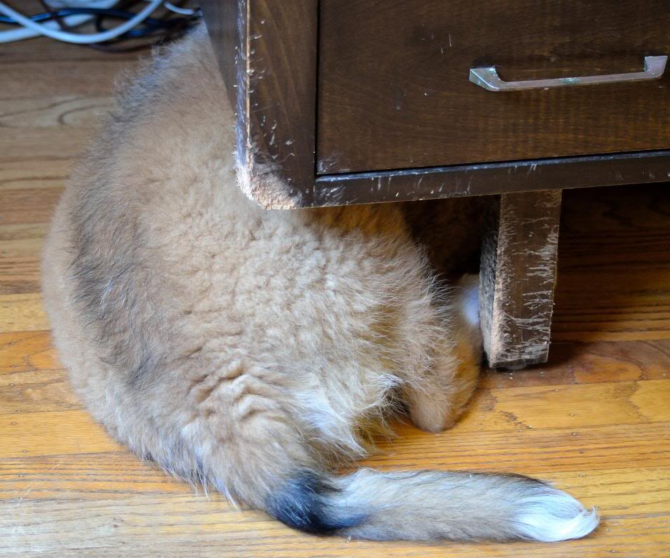 Из-под моего письменного стола доносится размеренный звук разгрызаемой ножки... но не исключено, что это звук разгрызаемого стабилизатора.
