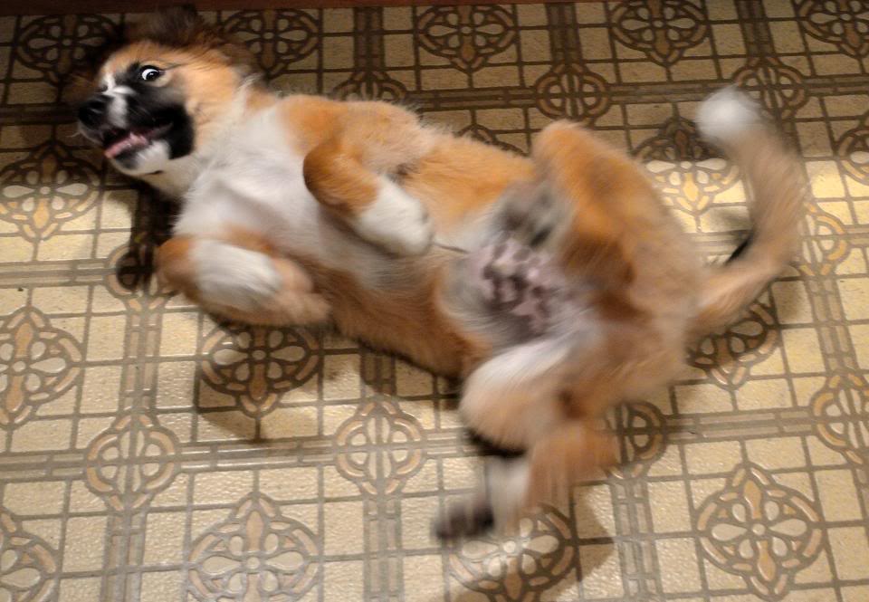 Теперь, если собачий человек осмеливается устроиться в кресле, Дюкоша с разбегу прыгает ему на живот - это 30 фунтов со скоростью 20 миль в час, посчитайте кинетической воздействие сами!... Человек не успевает даже подать команду «Off!» - только из живота доносится жалкое «Ойб!..»