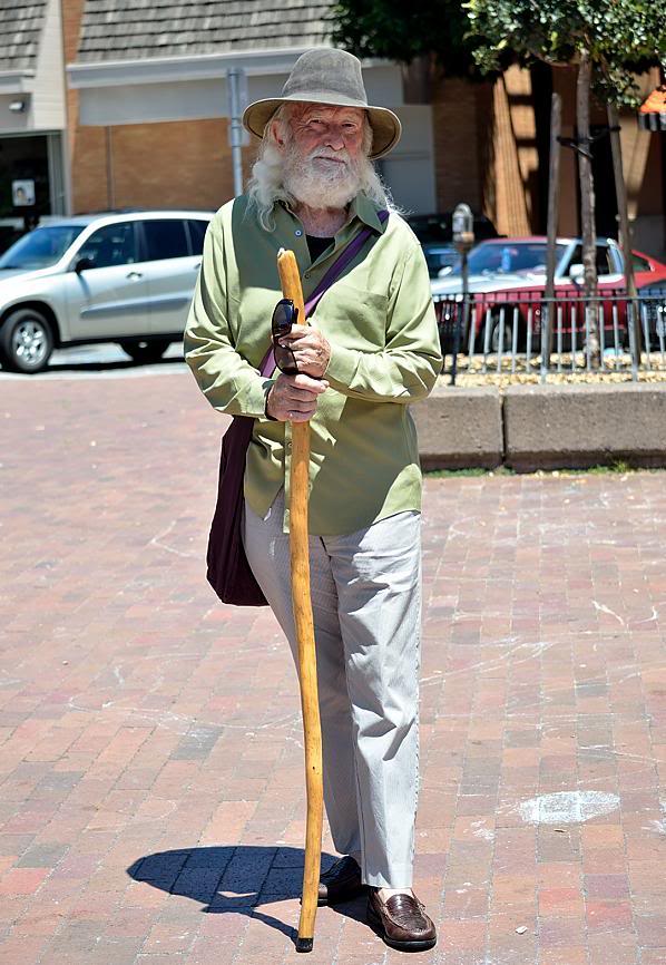 Джош со знанием дела позирует с клюкой странника и соответствующе
