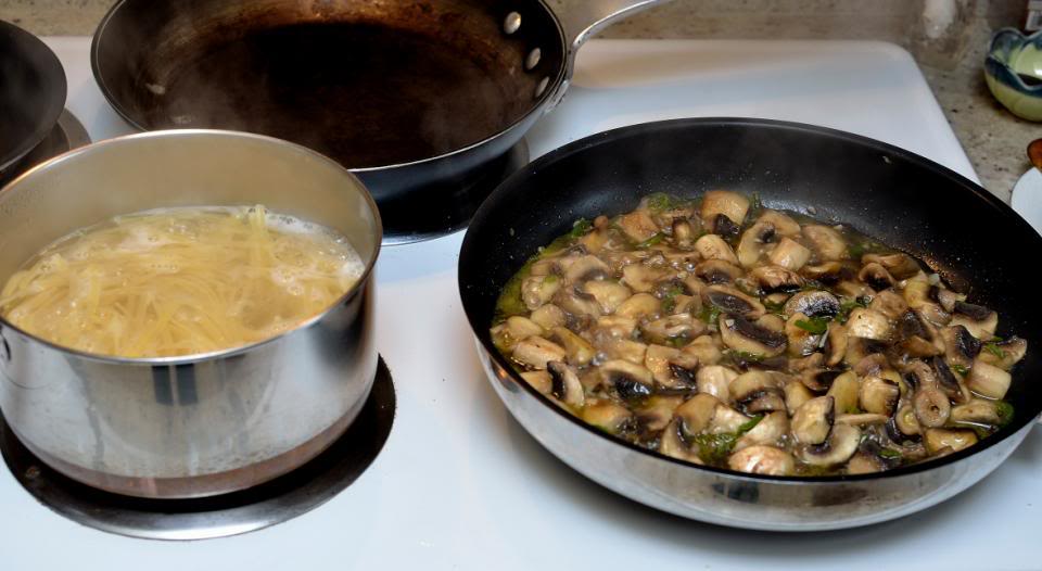 Приготовление: Положите макароны в кастрюльку, залейте кипятком, посыпьте солью, как вы обычно делаете, когда варите макароны, и поставьте на огонь, заметив время: Fettuccini должны вариться 16-17 минут.
