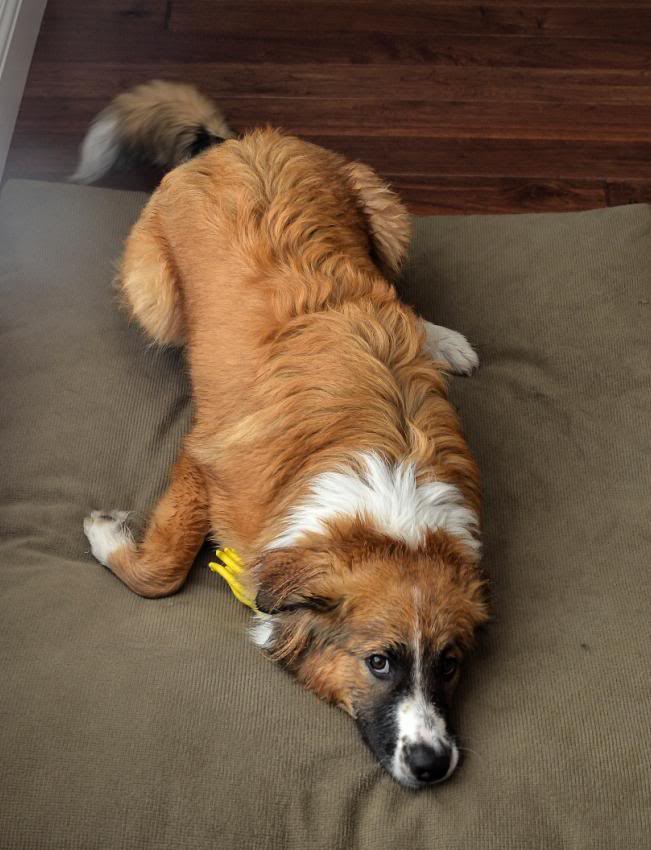 Мокрый Дюкоша сохнет на Бенькином матрасике.