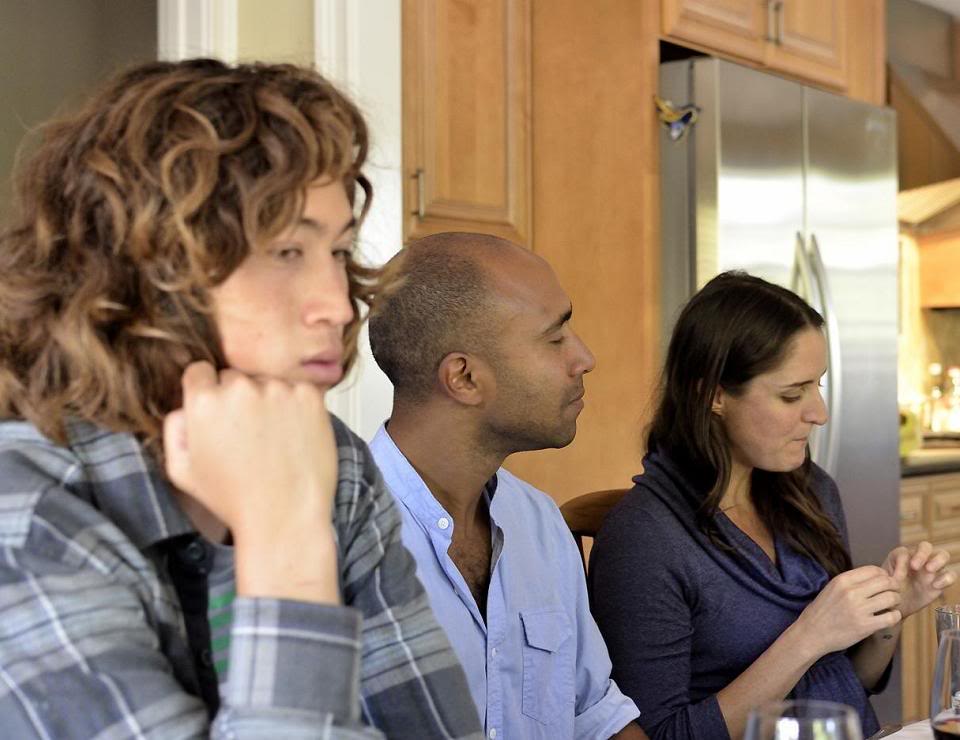 Наконец все уселись за праздничный стол. Ребекка рассказывает собравшимся о новогодней традиции, зажигает свечи и произносит молитву на hebrew. Она отлично владеет языком - в своё время трудилась в израильском религиозном кибуцце (это популярный среди американской молодёжи опыт) - ещё до того, как отправиться в длительное путешествие по Индии и юго-восточной Азии...
