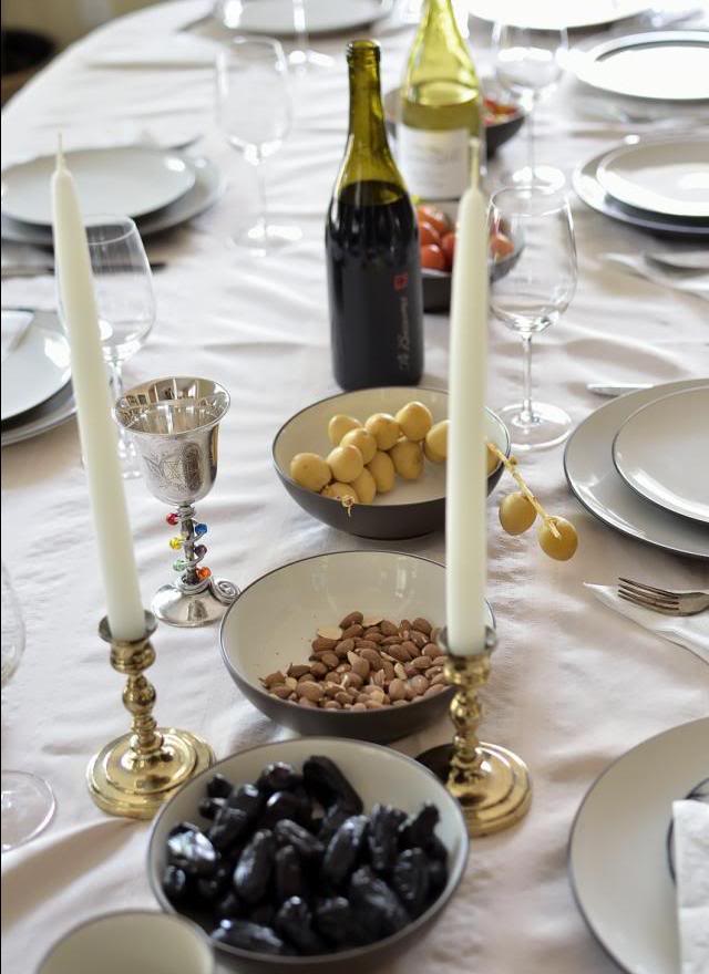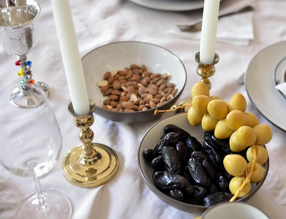 Понемногу на столе материализуютс я традицинные новогодние сладости - орехи, чернослив, пальмовые плоды, яблоки, мёд...