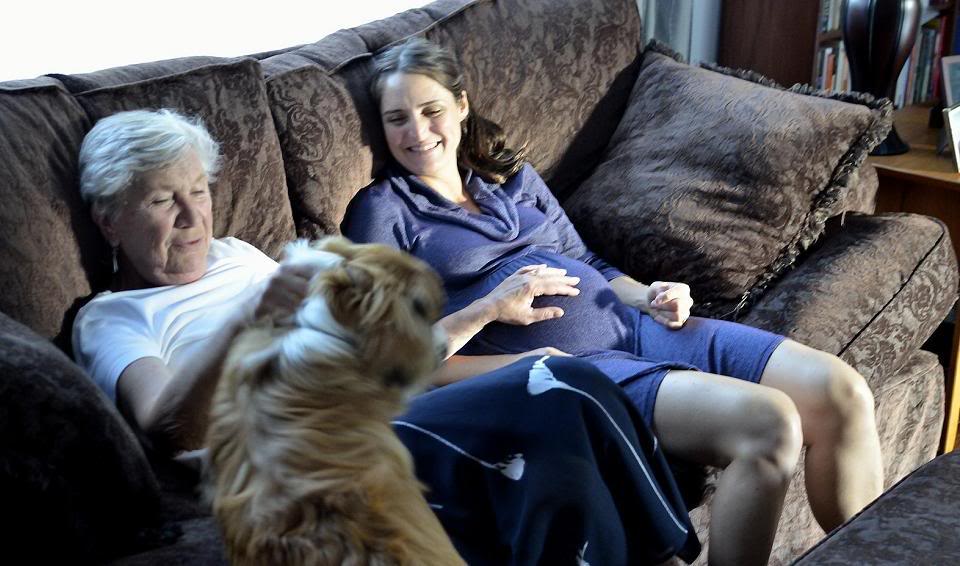На этом снимке женщина стопроцентно русских кровей, рассказывает Дженни, какое это невообразимое счастье – впервые увидеть своего ребёнка, в то время как пёс - стопроцентно чистых кровей English Shepher - подсказывает собеседницам, что увидеть своего первого щенка тоже очень приятно.