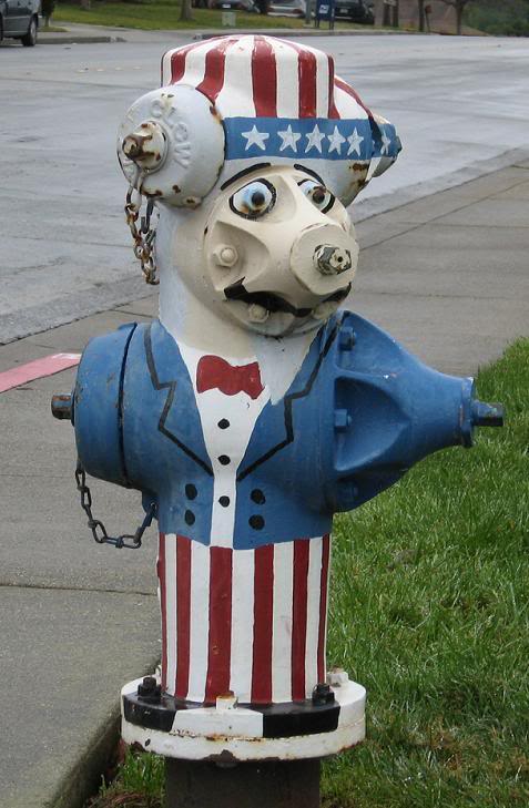 На улицах было совершенно пусто, ни единой живой души, если не считать диких голубей. Да, еще я повстречался с вот этими двумя пожарными гидрантами. Первый был раскрашен патриотически настроенными американцами: