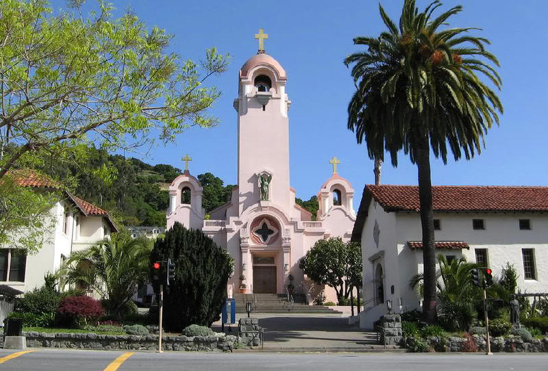На днях letnie_sumerki вывесила в своём журнале очень симпатичный фотоотчёт о городе Пловдиве. Под впечатлением этого материала я взял камеру и отправился снимать что ни попадя в окрестные городки Сан-Рафаэль и Сан-Ансельмо. Они расположены вплотную один к другому, и только налоговый инспектор да полицейские знают, наверное, где проходит точная граница раздела между ними. Под катом – снимки, сделанные во время этого похода. Фотографий многовато, но мне хотелось передать читателю уникальное ощущение Marin County…Сан-Рафаэль – главный городок в Marin, на север от Сан-Франциско. Население – пятьдесят шесть тысяч человек. Когда-то здесь жили индейцы прибрежных племён Мивок и Аван-Ви. Потом с юга пришли католические монахи, построили миссию Сан-Рафаэль и ничтоже сумняшеся взялись крестить бедняг-индейцев. В результате прибрежные племена быстро рассеялись, на их место прибыли мексиканцы и, с началом калифорнийской золотой лихорадки, иммигранты европейского происхождения. Три четверти населения сегодня составляют белые, около четверти – латино-американцы, немногим более двух процентов – чёрные, пол-процента – самые упрямые из индейцев. Вот как выглядит сегодня Миссия Сан-Рафаэль (Миссия Св. Рафаила-Архангела), с которой начинался город: